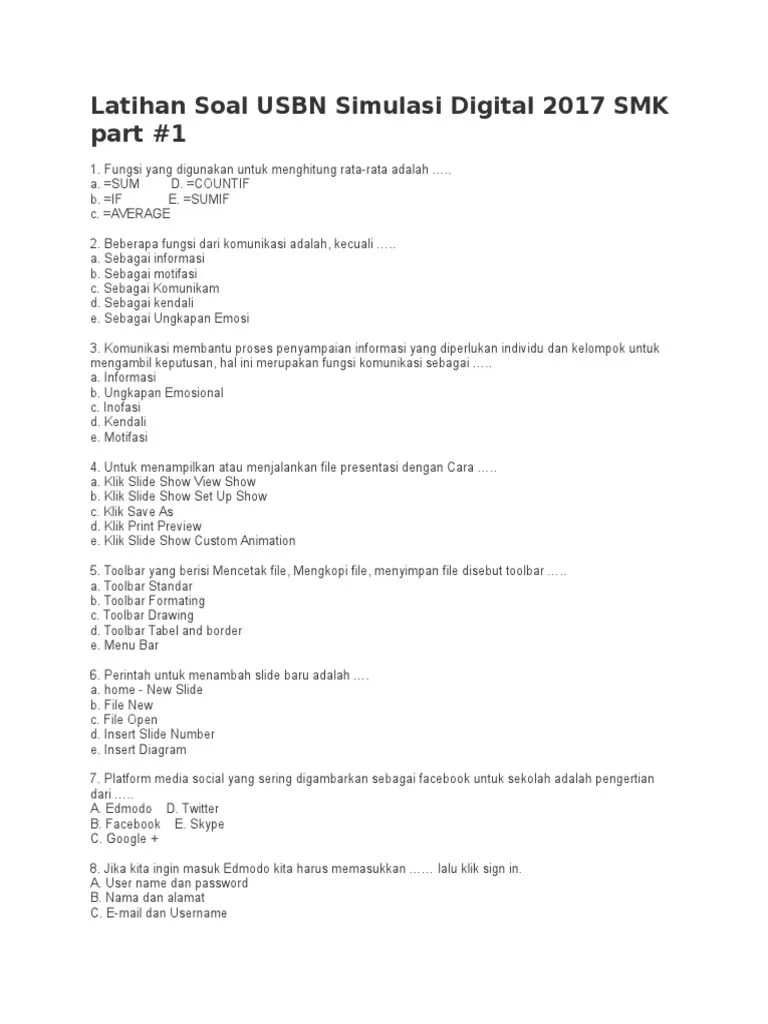 Get the latest news and updates emailed straight to your inbox. Menuju ujian sekolah berstandar nasional ( usbn ) 2017/2018. Some harmful virus inside their computer. Latihan soal usbn simulasi digital 2017 smk part. Berikut merupakan contoh soal ujian sekolah simdig terbaru dengan.